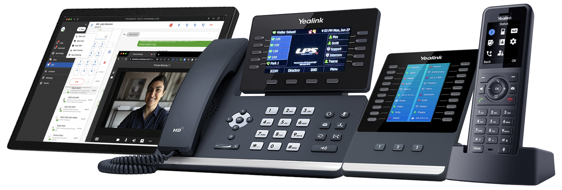 The functional combination of the T54W Desktop Set, Click to Call, Automation Manager and CORENEXA creates a powerful multimedia workstation for voice and video calling with visual access to SMS, chat, call recordings, visual voicemail and contacts and calendars (Google Workspace or Microsoft 365).