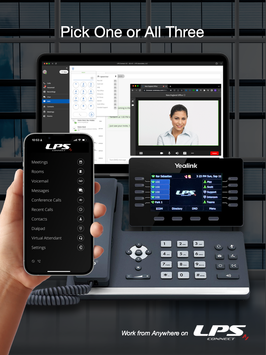Chat, video conferencing, and sophisticated collaboration features combined with LPS Connect's robust enterprise voice and SMS texting capabilities deliver a powerful and comprehensive, Unified Communications and Collaboration-Centric platform.